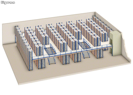 There can be two or three levels. It is suitable for storing light bulbs and small pieces of cargo, especially those of high-volume and multi-species or of multi-species and low volume. Cargos are usually elevated to the second floor or third floor by forklifts, hydraulic lifts or freight elevator, and then sent to a location by a car or pallettruck.
